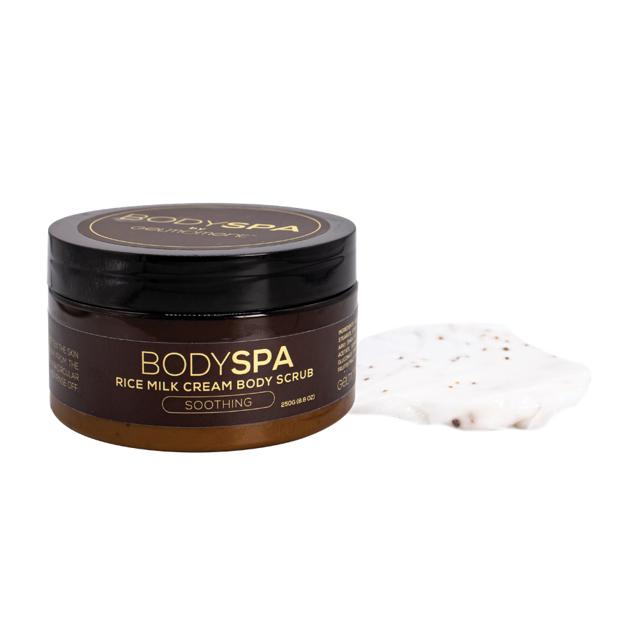 Rice Milk Body Cream Scrub is a subtly sweet milky Shea butter cream that helps to moisturize and revitalize the skin cells, while you exfoliate. Thai Rice extract contains natural antioxidants which help to soothe and restore skin tone and prevent wrinkles.